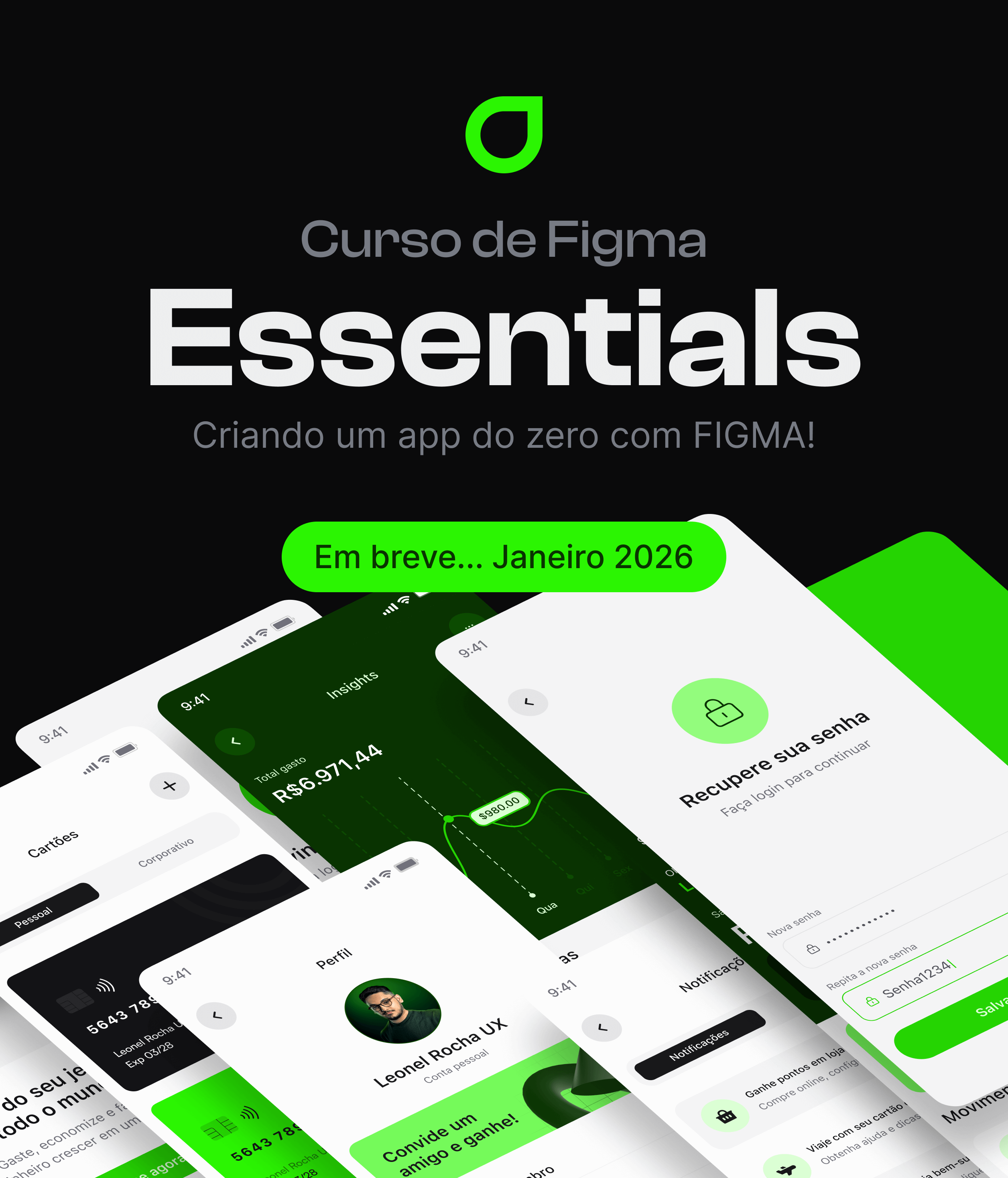 Você irá aprender Figma do zero criando um app de finanças. Irá desde o mais básico à componentes, variáveis, tokens, auto layout avançado, protótipo e muito mais.