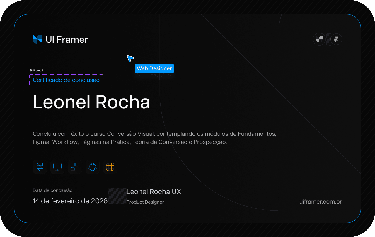 É a segunda metade da formação. O Conversão Visual ensina a projetar. O UI Framer ensina a colocar no ar.