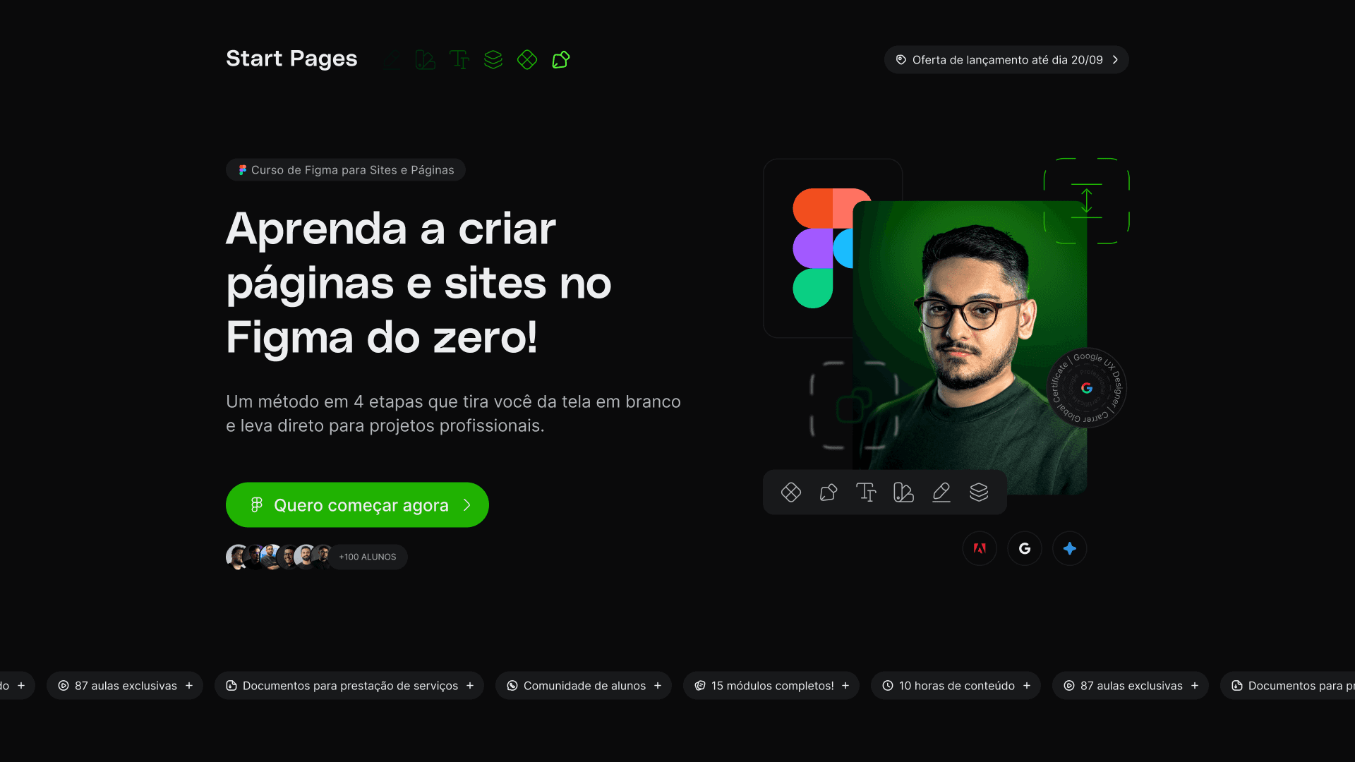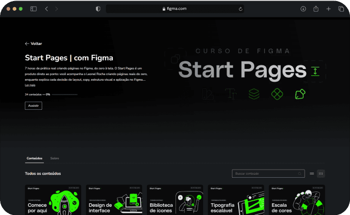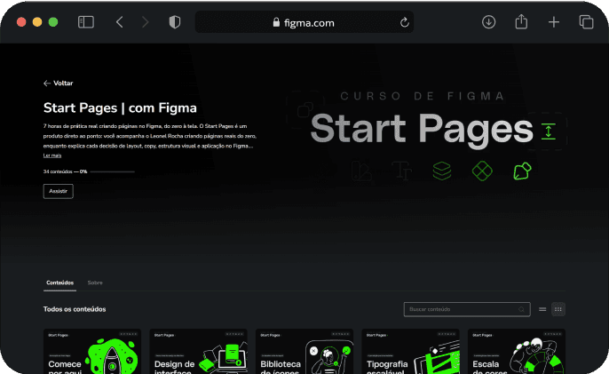 Você não precisa mais se sentir perdido no Figma. Com o processo do Start Pages, cada etapa é pensada para levar você da tela em branco até páginas prontas para portfólio e mercado.