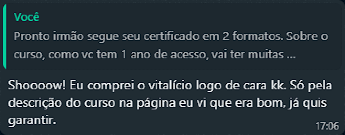 Este produto é vendido com apoio da plataforma Hotmart. A responsabilidade pela entrega do conteúdo é do produtor deste curso. A Hotmart não se responsabiliza pelas informações publicadas, tampouco pelas transações realizadas, sendo apenas a intermediadora do pagamento.